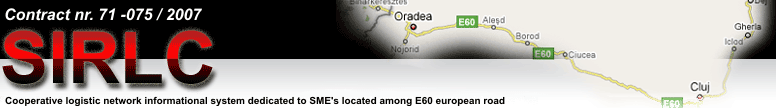 In side of SIRLC Project is proposed conceiving and realizing of an informational system for a cooperative logistic network which is worshiped for SMEs located among the Romanian driveway of E60 European Highway (Bors-Oradea-Cluj-Brasov-Bucharest-Constanta). The European Highway E60 is a highway/freeway which is gone from Brest in Britannia, France and going from Romania to Constanta, passing by Nantes-Orleans-Basel-Vienna-Budapest-Brasov-Bucharest and has a longer of approx.3380km.